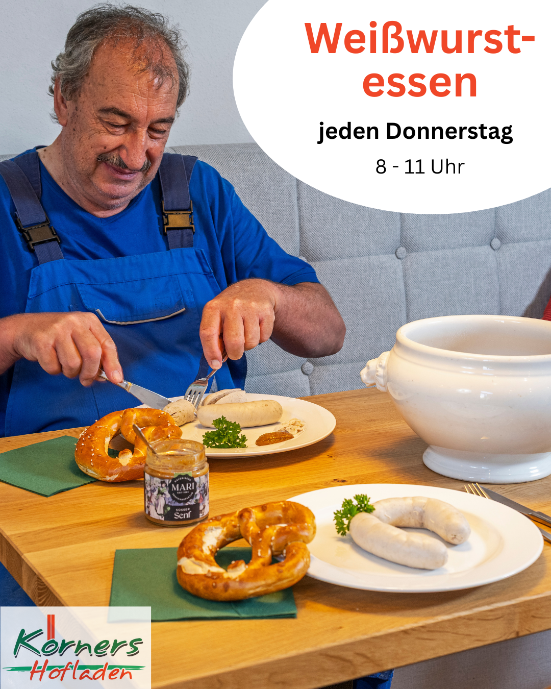 Jeden Donnerstag gibts ein traditionelles Weißwurstfrühstück in unserem Hofladen: